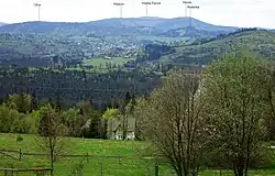 - ↑ Beskid Śląski i Żywiecki. Mapa 1:50 000, Kraków: Compass, 2011, s. 2, ISBN 978-83-7605-084-3.