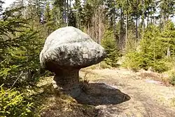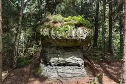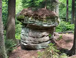 Grupa skalna "Skalne Grzyby" – powstała w wyniku erodowania ławic piaskowca na krawędzi wierzchowiny[2]. Są to formy skalne zbudowane z piaskowców i nieprzepuszczających wody margli i łupków[2]. Przed orogenezą stanowiły dno morza[2].