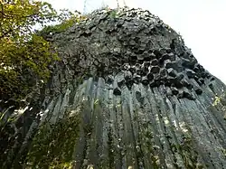 Skalny wodospad powstał ok. 4 mln lat temu (pliocen), w wyniku zastygnięcia lawy bazaltowej. Położony jest na wschodnim zboczu wzgórza zamkowego, które tworzy bazaltowy nek o wymiarach 160 × 130 m. Pięcio- i sześcioboczne kolumny (tzw. cios słupowy lub kolumnowy), powstające podczas powolnego chłodzenia, są typowe dla bazaltu. Jednakże tak idealne wykształcenie i charakterystyczne wygięcie, prezentowane przez skalny wodospad, stanowi unikat w skali europejskiej.