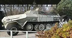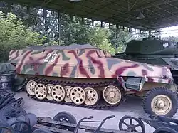 Najcenniejszym eksponatem jest ciągnik artyleryjski Sd.Kfz.8, w prototypowej wersji, opancerzonej płytami 12 mm. Choć nie podjęto produkcji seryjnej, wykonane egzemplarze wykorzystano pod koniec wojny na froncie wschodnim. Ciągnik należał do oddziałów Luftwaffe (posiada oryginalną tablicę rejestracyjną WL 323863, potwierdzającą oznaczająca przydział do sił powietrznych) i zatonął w Pilicy w 1945 r. Podczas nieudanej próby wydobycia w 1957 r. wysadzono w powietrze górną część pojazdu. Wrak został wydobyty w 1999 r. przez członków Stowarzyszenia Przyjaciół Pilicy i Nadpilicza z Andrzejem Kobalczykiem na czele; rekonstrukcja trwała do roku 2003. Dwa lata później pojazd, wyposażony w zastępczy silnik z KrAZa, został uruchomiony. Posiada oryginalną skrzynię biegów i elementy układu napędowego oraz całkowicie zachowany, autentyczny układ gąsienicowy. Jest to prawdopodobnie jedyny zachowany na świecie egzemplarz pojazdu tej wersji[4].