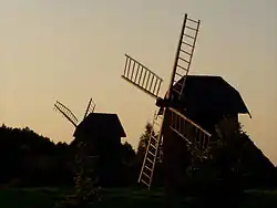 Wiatrak koźlak kryty gontem – pochodzi z lat 30. XX wieku. Niegdyś stał w Orli, przewieziony do Białowieży został w 1985. Wewnątrz można oglądać kompletny mechanizm służący do mielenia zboża, który po remoncie przewidywany jest do uruchomienia.