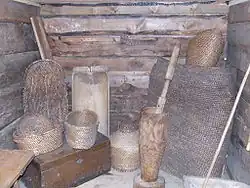 Bania (sauna) – zrekonstruowana w 1987, kryta gontem. Pierwotnie posiadała oryginalny piec z łukowym sklepieniem, na którym grzano kamienie.