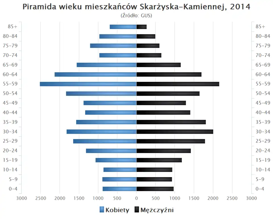 Piramida wieku mieszkańców Skarżyska-Kamiennej w 2014 roku[5]: