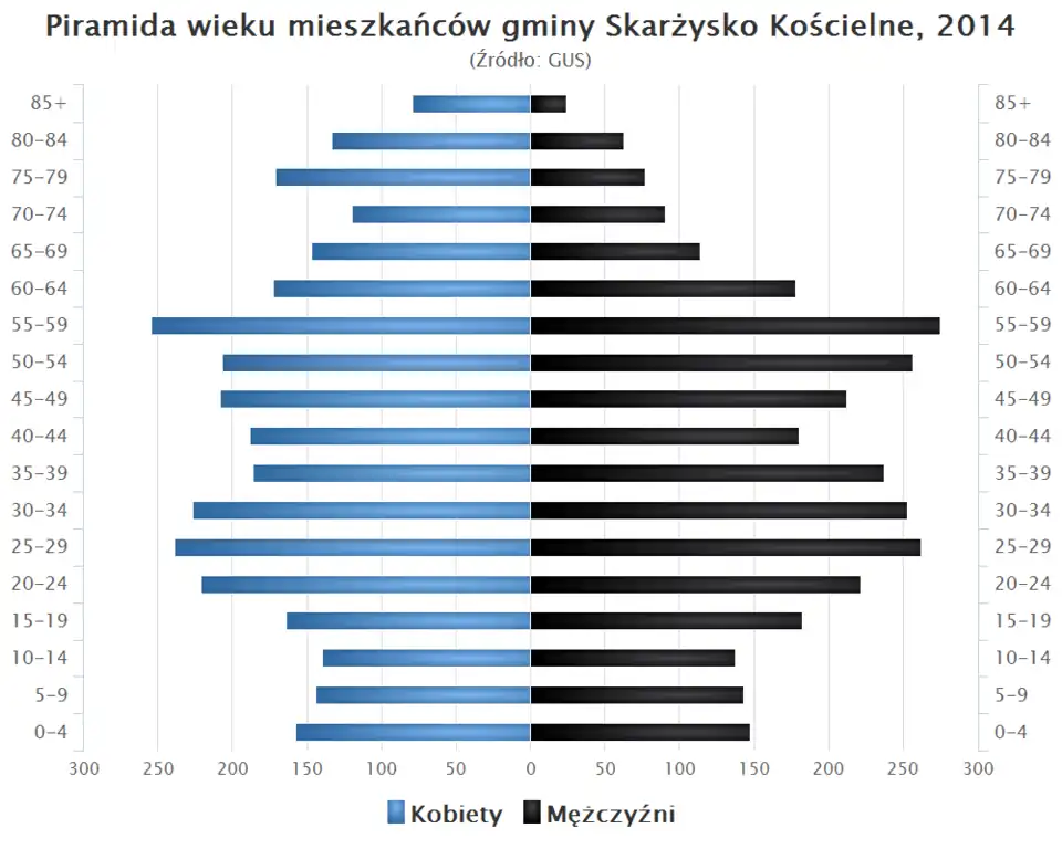 - Piramida wieku mieszkańców gminy Skarżysko Kościelne w 2014 roku[1].