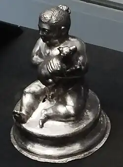 Jednym ze srebrnych przedmiotów jest statuetka siedzącego chłopca, trzymającego psa na rękach (wysokość 10,4 cm, waga 106,44 gr[5]). Na spodzie podstawy statuetki znajdują się trzy grupy otworów, które można otwierać i zamykać. Przedmiot ten jest określany jako solniczka lub jako pojemnik na pieprz (piperatorium)[2].