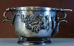 - ↑ Wykonane w rzeźbie półpełnej wskazują na dekoracyjne, a nie użytkowe przeznaczenie tych naczyń (Elżbieta Makowiecka: Sztuka Rzymu. Od Augusta do Konstantyna. Warszawa: Wydawnictwa Uniwersytetu Warszawskiego, 2023, s. 186).
