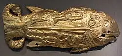 - okucie gorytosu, o długości 41 cm, w kształcie ryby, której ciało wypełnione jest przedstawieniami innych zwierząt,