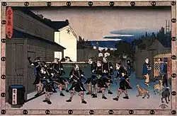 - ↑ История сорока семи ронинов, или Самураи Восточной столицы (в гравюрах Итиюсая Куниёси и биографиях Иппицуана), пер. М. В. Успенский, Калининград 1998.