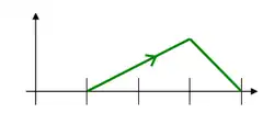 Efekt takiego przekształcenia liczby z rys. 2 przedstawiony jest na rys. 3. Zwróćmy uwagę, że na rys. 2 zmienną niezależną jest zaś na rys. 3 zmienną niezależną jest występujące jako zmienna zależna na rys. 2. Zauważmy, że strzałka na wykresie rys. 3 może być przeciwna, gdy zmienimy kolejność w parze reprezentującą Skierowaną Liczbę Rozmytą. Tak więc jeśli podamy. funkcję przynależności klasycznej liczby rozmytej, to można jej przyporządkować dwie różne Skierowane Liczby Rozmyte, różniące się właśnie skierowaniem, tj. strzałką na wykresie.