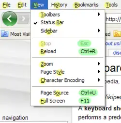 Skróty klawiaturowe (kolor zielony) oraz mnemoniki (kolor żółty) w Firefoksie 3.0