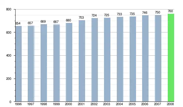 Zmiany liczby ludności w miejscowości Skrabské od 1996 roku[9].