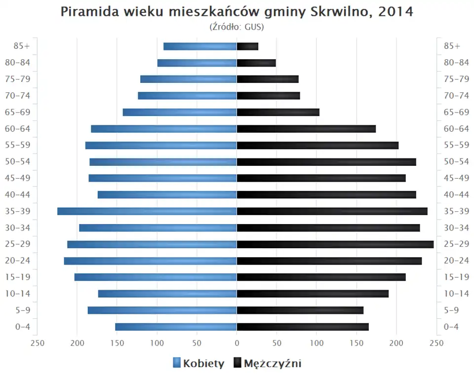- Piramida wieku mieszkańców gminy Skrwilno w 2014 roku[1].