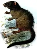 Mesocapromys melanurus | (F. Poey, 1865) | kubohutia czarnoogonowa | gatunek monotypowy | na zachód do zatoki Malagueta i ujścia Cauto; granice zasięgu bardzo słabo poznane | DC: 31–38 cm DO: 21–32 cm MC: do 1,6 kg |