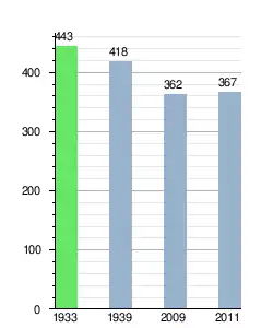 W 1933 r.[5] w miejscowości mieszkały 443 osoby, a w 1939 r.[6] – 418 osób[7]. W 2009 r. mieszkały tu 362 osoby[8], a w 2011 r. – 367 osób[1].