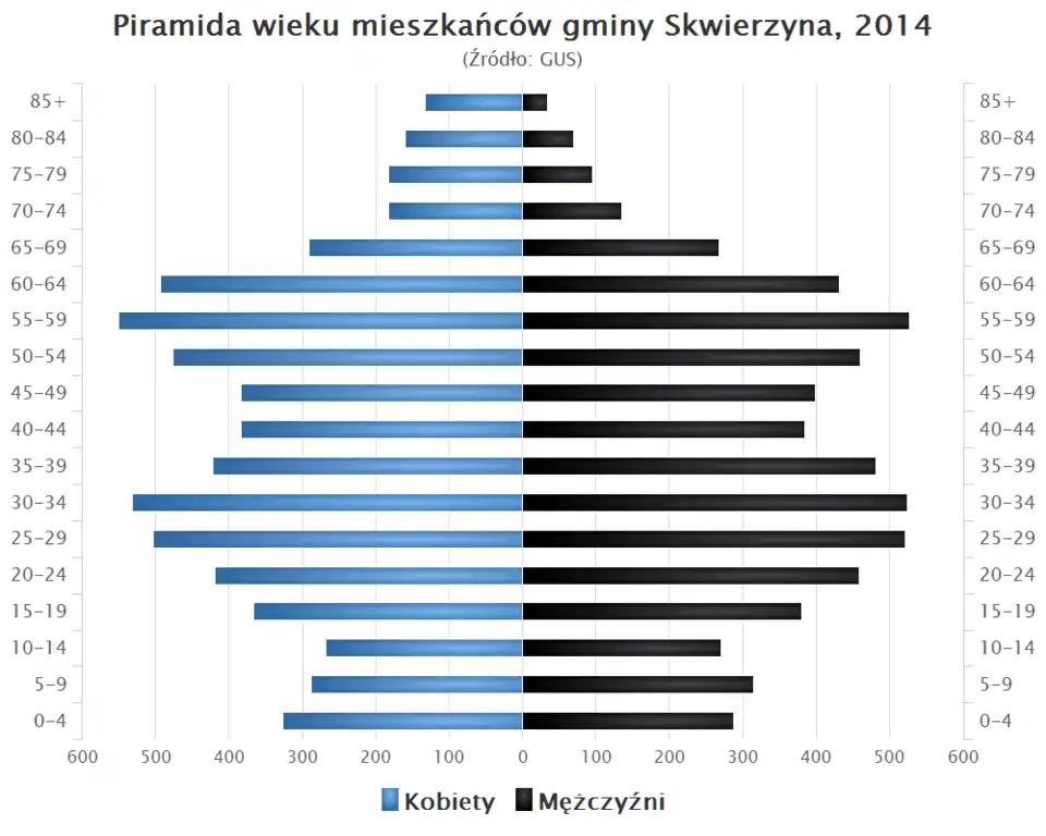 - Piramida wieku mieszkańców gminy Skwierzyna w 2014 roku[1].