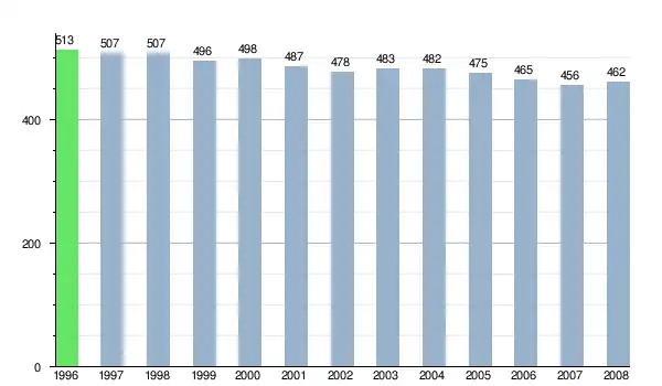 Według danych z dnia 31 grudnia 2012, wieś zamieszkiwały 503 osoby, w tym 245 kobiet i 258 mężczyzn[6].