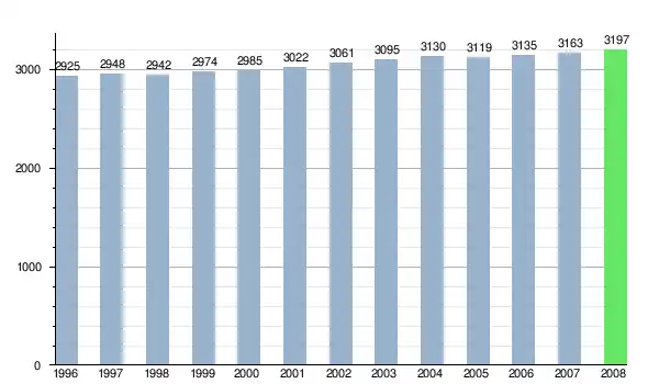 Według danych z dnia 31 grudnia 2012, wieś zamieszkiwały 3204 osoby, w tym 1652 kobiety i 1552 mężczyzn[6].