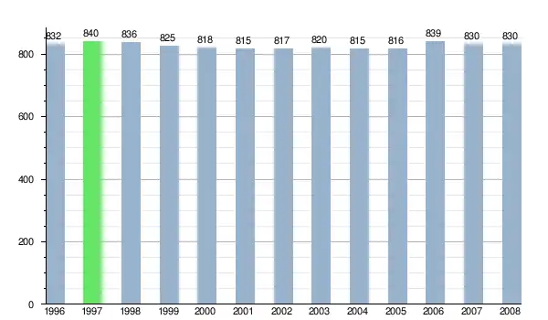 Według danych z dnia 31 grudnia 2012 roku, wieś zamieszkiwały 783 osoby, w tym 408 kobiet i 375 mężczyzn[7].