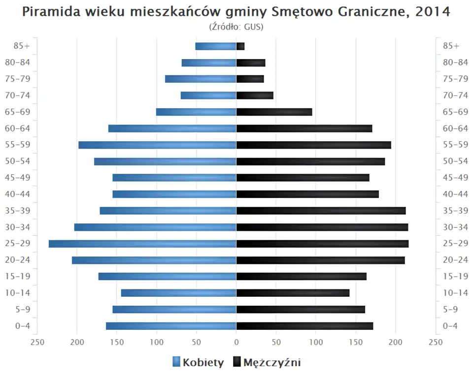- Piramida wieku mieszkańców gminy Smętowo Graniczne w 2014 roku[1]: