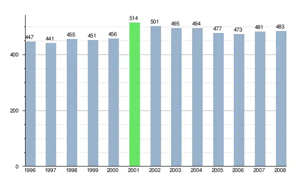 Zmiany liczby ludności w miejscowości Smolnícka Huta od 1996 roku[8].