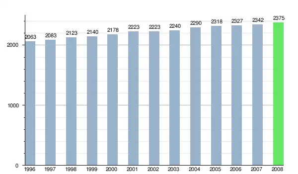 Według danych z dnia 31 grudnia 2012 roku, wieś zamieszkiwało 2468 osób, w tym 1218 kobiet i 1250 mężczyzn[7].