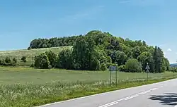 - Na południowym zboczu u podnóża wzniesienia pozostałości wyrobisk po nieczynnym kamieniołomie.