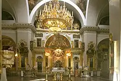 Trzy ołtarze soboru poświęcone są Przemienieniu Pańskiemu, św. Klemensowi i św. Piotrowi, patriarsze Aleksandrii oraz św. Sergiuszowi z Radoneża. W świątyni znajduje się panikadiło na 120 świec[3].