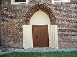 - wczesnogotycki portal ostrołukowy wykonany z profilowanej cegły,