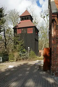- dzwonnica z 1797 roku, drewniana, konstrukcji słupowej, oszalowana, kryta gontem, z dzwonem z 1558 roku fundacji Jadwigi Sobockiej i drugim z 1762.