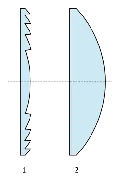 Soczewka Fresnela, soczewka schodkowa, soczewka pierścieniowa – skonstruowana w 1822 r. przez Augustina-Jeana Fresnela soczewka składająca się z koncentrycznych pierścieni będących pocienionymi fragmentami soczewki. Często zbudowana jest z dwóch warstw – rozpraszającego kolimatora i skupiającego kolektora.