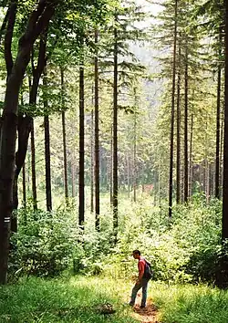 niebieski szlak turystyczny z Dzikowca na Lesistą Wielką. Północno-zachodnim zboczem trawersuje