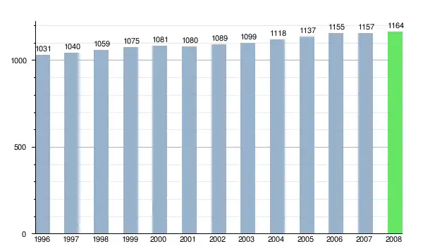 Według danych z dnia 31 grudnia 2012, wieś zamieszkiwało 1288 osób, w tym 647 kobiet i 641 mężczyzn[6].