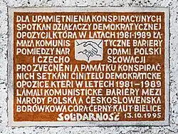- ↑ Janusz Krzeszowski: W mieście spotkań powstał skwer Solidarności Polsko-Czesko-Słowackiej. wroclaw.pl, 2020-08-27. [dostęp 2020-09-25]. (pol.).