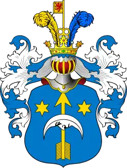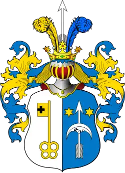 Somnicz II odmienny: Tarcza dzielona w słup, z polu prawym klucz złoty, w polu lewym, błękitnym, półksiężyc z twarzą srebrny przeszyty takąż strzałą, pomiędzy dwiema gwiazdami złotymi. Klejnot: nad hełmem w koronie strzała jak w godle pomiędzy dwoma piórami strusimi, z prawej złotym, z lewej błękitnym. Labry: błękitne podbite złotem.
