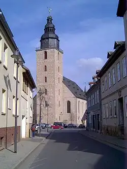 - kościół św. Krzyża (Cruciskirche) – najstarszy budynek w mieście. Budowę rozpoczęto w 1392, do 1908 kościół służył katolikom, potem, po wybudowaniu nowej świątyni katolickiej, przeszedł na własność miasta i służył jako magazyn i stopniowo niszczał, aż w czasach NRD stał się ruiną – był bez dachu i wieży. Dopiero w 2001 zaczęto stopniową odbudowę.