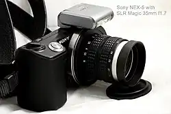 - ↑ Sony Discloses Basic Specifications of the "E-mount" for Interchangeable Single Lens Cameras without Fee. Sony, 2011-02-08. (ang.).
