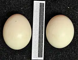 Samica składa 5–13 białych jaj w odstępach 1–2 dniowych. Ich ilość w lęgu zależy od zasobności okolicy w pokarm. Jaja są wysiadywane począwszy od pierwszego jaja przez ok. 25–30 dni wyłącznie przez samicę, która jest w tym czasie karmiona przez samca.