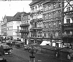 Kamienica nr 31 została wyburzona w latach 1871–1873, w tzw. okresie grynderskim, a w jej miejsce wzniesiono mieszkalno-handlową kamienicę czynszową. Budynek miał pięć kondygnacji o pięcioosiowej elewacji zakończonej dachem pulpitowym ze spadkiem od strony Rynku. Na dwóch pierwszych kondygnacjach znajdowały się wielkie okna wystawowe; na dwóch piętrach umieszczone były sklepy. W osi drugiego i trzeciego piętra znajdował się trójboczny wykusz zakończony balkonem na ostatniej kondygnacji[32].