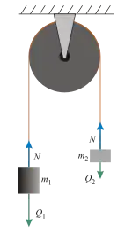 Zakłada się, że oba obciążniki poruszają się pionowo. Nić jest nierozciągliwa, co sprawia, że przebywane drogi oraz wartości prędkości i przyspieszeń są dla obydwu ciał jednakowe. Na każdy z obciążników działają dwie siły – siła ciężkości Q i siła naciągu nici N. Jeżeli bloczek ma znikomo małą masę, obraca się bez oporów, a nić jest nieważka i doskonale elastyczna, to obie siły naciągu mają takie same wartości i zgodne zwroty. W związku z tym, że wszystkie wektory sił są pionowe wystarczy rozpatrzeć zagadnienie tylko w kierunku pionowym. Załóżmy, że oś jest skierowana w dół. Wobec tego[4]: