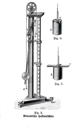 Demonstrację można również przeprowadzić w taki sposób, że początkowo oba jednakowe ciężary poruszają się ruchem jednostajnym prostoliniowym, po czym dodatkowy obciążnik pobierany z chwytaka powoduje nadanie im stałego przyspieszenia i przejście do ruchu jednostajnie zmiennego: najpierw opóźnionego, następnie przyspieszonego, aż do ponownego przejęcia dodatkowego obciążnika przez chwytak.
