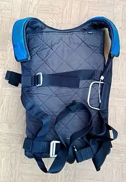 - Uprząż nośna połączona w jedną całość z pokrowcem, która umożliwia założenie spadochronu przez użytkownika i wyhamowuje jego ciało w momencie otwierania się czaszy