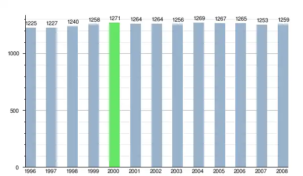 Według danych z dnia 31 grudnia 2012, wieś zamieszkiwały 1243 osoby, w tym 647 kobiet i 596 mężczyzn[6].
