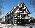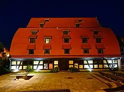 Jest to budynek piętrowy, z użytkowym poddaszem, wzniesiony na rzucie wydłużonego prostokąta, nakryty dachem dwuspadowym z facjatkami[9]. Został wykonany w konstrukcji szachulcowej. Spośród innych obiektów wyróżnia go gotycka piwnica zachowana z XV wieku, o krzyżowym sklepieniu, wspartym na masywnych ceglanych filarach. Zachował się pierwotny jednoprzestrzenny układ wnętrz, z drewnianymi słupami (obecnie przekształcony na parterze)[9].