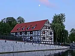 Większość spichlerzy bydgoskich zbudowano w konstrukcji szachulcowej.