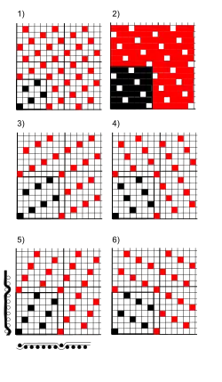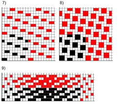 - sploty cieniowane – powstają przez dodanie w kolejnych raportach dodatkowych pokryć, podobnie jak w splotach wzmocnionych. Rysunek 9 przedstawia splot cieniowany na bazie splotu atłasowego zasadniczego (2). Ro ≠ Rw