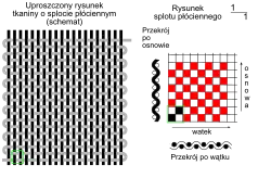 Rysunek ilustruje w sposób uproszczony budowę tkaniny o splocie płóciennym. W splocie tym nitka wątku przebiega kolejno pod jedną i nad jedną nitką osnowy. Wygląd lewej i prawej strony tkaniny jest jednakowy[3].