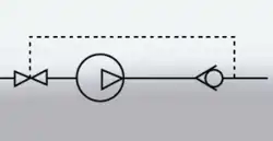 Regulacja przy zastosowaniu przewodu obejściowego opiera się na tej samej zasadzie co regulacja przy pomocy zaworu nadmiarowego. Różnica polega na tym, że uwolnione powietrze pod ciśnieniem jest schładzane i kierowane ponownie do wlotu sprężarki. Ta metoda jest często stosowana w sprężarkach procesowych, gdzie gaz nie może być wypuszczany do atmosfery lub jest na to zbyt cenny.