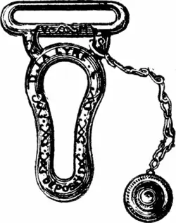 Szczególnym rodzajem sprzączek są elementy używane w podwiązkach w celu spinania ich z pończochami. Jedną z wersji takich sprzączek przedstawia ilustracja po lewej.