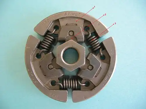 Popularne są sprzęgła rozruchowe odśrodkowe są sterowane siłą odśrodkową. W tego typu sprzęgłach na łączniki (np. klocki hamulcowe, szczęki) działa siła odśrodkowa, która dociska je do jednego z członów sprzęgła i tym samym za pomocą tarcia przenoszony jest moment z członu czynnego na człon bierny.