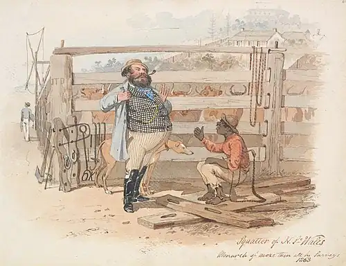 W wyniku funkcjonowania społeczeństwa klasowego w Australii w XIX w. oraz odmiennych od występujących w Wielkiej Brytanii warunków gospodarowania ziemią, pojawiła się tam grupa osadników, którzy w sposób nielegalny przejmowali tzw. ziemię niczyją, z reguły należącą do Aborygenów. Władze kolonialne początkowych lat osadnictwa brytyjskiego w Nowej Południowej Walii przywiązywały dużą wagę do uprawy ziemi i hodowli. W tym okresie szczególny wpływ na ukształtowanie stosunków społeczno-gospodarczych Australii miał gubernator kolonii, Lachlan Macquaire. Dzięki jego osobistemu zaangażowaniu wprowadzono zasadę przydzielania przez gubernatora bezpłatnych działek osadnikom z Europy. Do 1825 roku takie działki mogły mieć do 30 akrów[a]. W 1826 roku nowy gubernator, Ralph Darling, ustalił granice obszaru, na którym działki dalej mogły być rozdawane za darmo. 3 lata później granice te rozszerzono, w wyniku czego objęły one dziewiętnaście hrabstw otaczających Sydney. Termin squatter pojawił się w 1828 roku i oznaczał osobę, która osiedlała się poza wyznaczonym darmowym obszarem. Termin ten wkrótce zmienił znaczenie i zaczęto nim określać bogaczy wypasających duże ilości zwierząt gospodarskich, zazwyczaj na terenach do nich nienależących. Z racji na ich dużą zamożność tą klasę społeczną zaczęto określać terminem squattocracy, co nawiązywało do angielskiego słowa arystocracy[4] (arystokracja). Terminu squatter używa się również do określania australijskiej ludności pasterskiej dzierżawiącej pastwiska od rządu[3].
